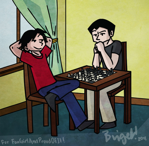 Cameron and Theo doing some homework , Cameron is a smarty pants and can normally get his homework done quite fast.Theo : HOW are you done already !? ..