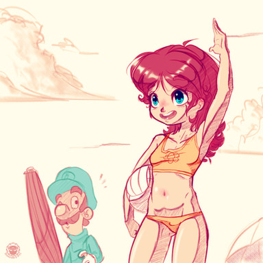 more fanart I suppose you can saythis is one of my more straitforward illustrations. She's basically blowing him off to catch a few waves before the sun goes down