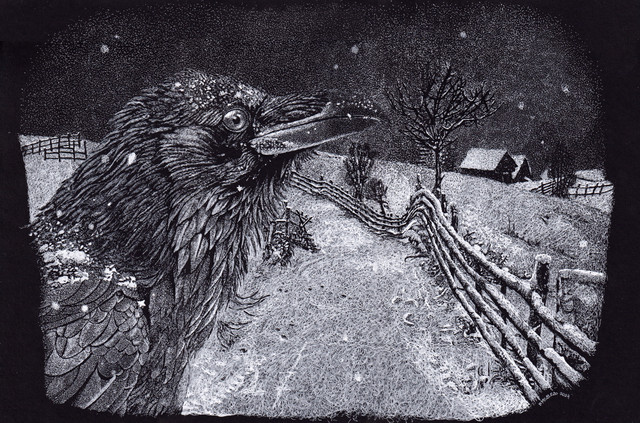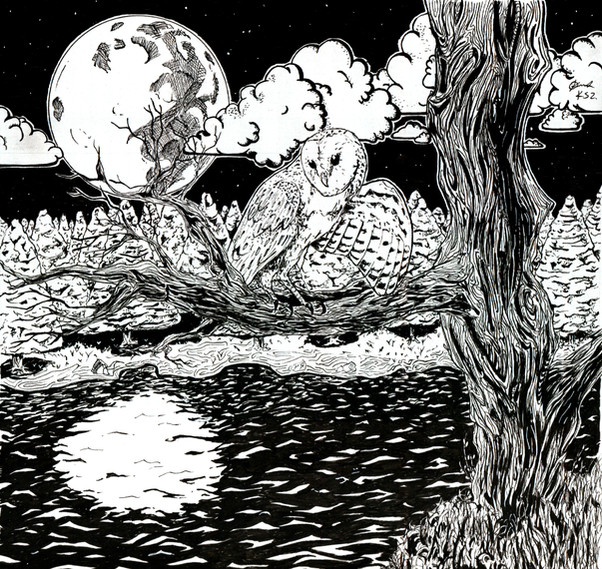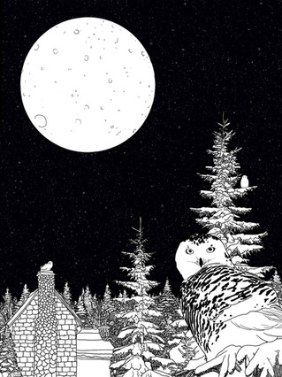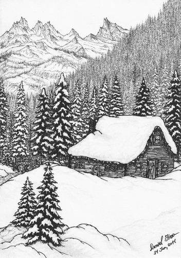 #barnowl #blackandwhite #cabin #canadian #ink #inkwork #landscape #metallic #mountains #owl #penandink #scenery #snow #snowflake #snowy #winter #pigmamicron #fineart #fineliner #nature