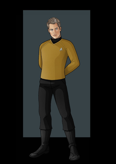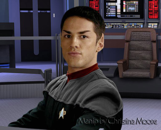 Working off of the Adrian Brody rumors, I did this concept of Spock. They'd have to completely shave his eyebrows and give him fake ones. His real eyebrows are the exact opposite, they naturally angle downwards! Uniform is pretty much the same as Kirks only blue with the science insignia. Brody's a solid actor, I wouldn't be upset about it.photoshop over pencil