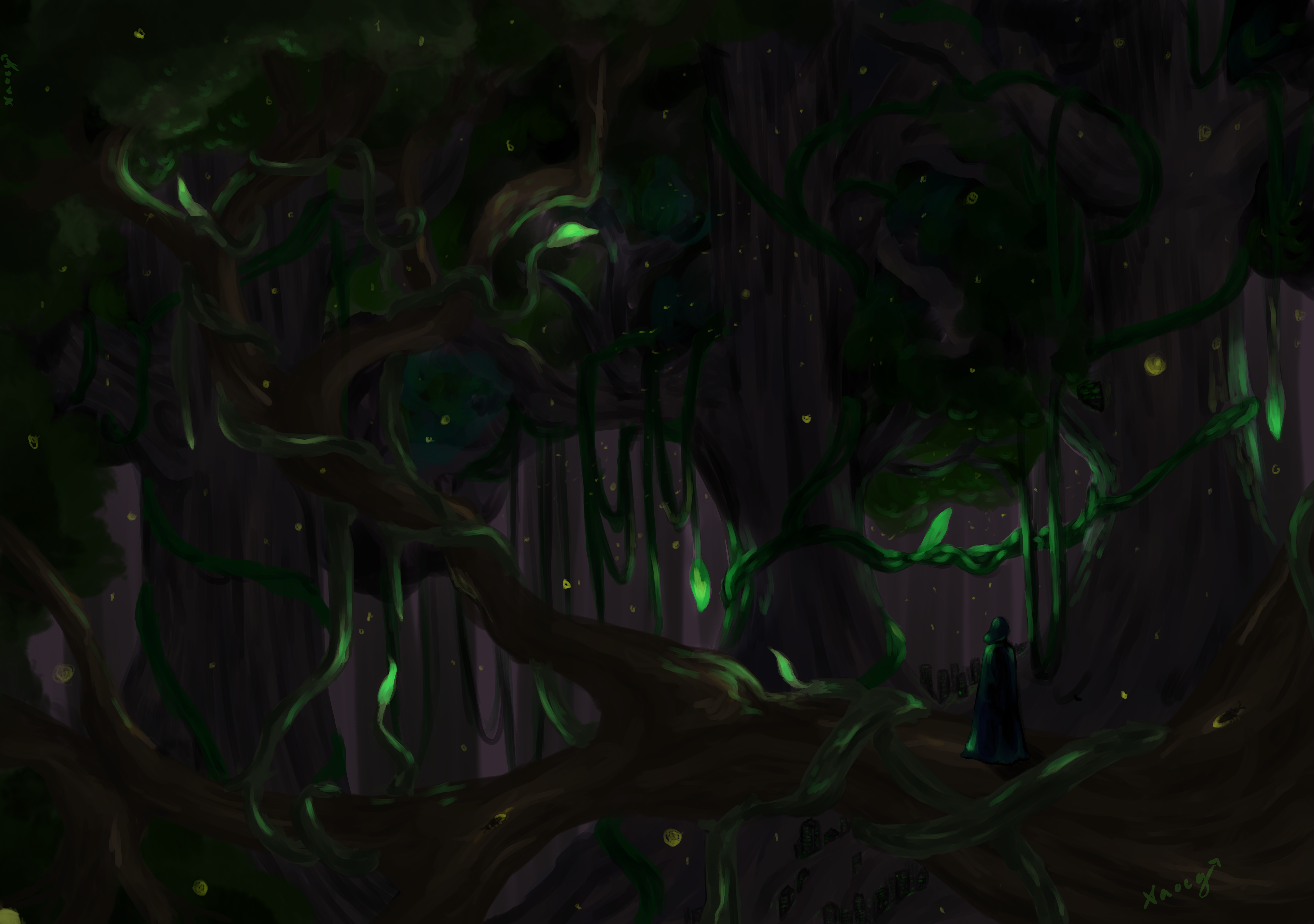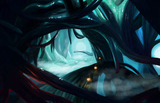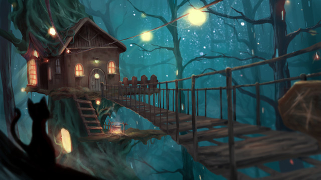 #blue #fantasy #forest #green #lake #lanterns #painting #reflection #spirit #spirits #tree #treehouse #water #artwork #digitalart #digitalpainting #illustration #landscape #scenery #scenerylandscape