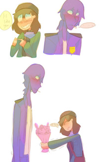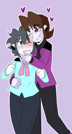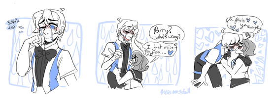 I doodled this lil comic thing as an add-on for an ask Roulie answeredabout Marionette and Rou's first kisses<3 duck-roulette.tumblr.com/post/… (guys dont be afraid to go ask him stuff about his characters, as well!)