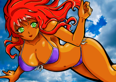 Starfire from the teen titans.... lol a little more grown up then she is in the show ^_^just a quick pic i did i've wanted to draw starfire for a while but everytime i tried i didn't like how it turned out till now that is