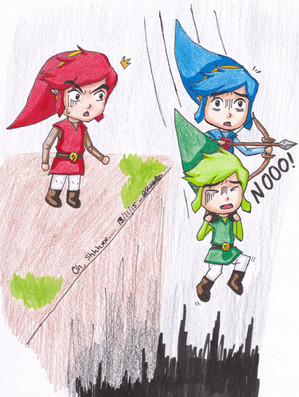 Blue: AAgh! Put him down, we need him!I can't draw toon link.... Or maybe I can, but not without a reference. (I drew this without reference except for the colors.) I am not very happy with this, but I spent too much time with it to just throw it away...Β