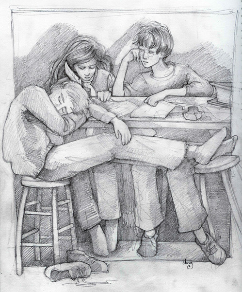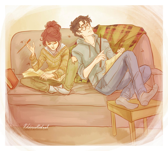 I love Harry Potter , I always say I will go over the best parts and finished reading them all !! Dbujo love this represents great characters ! . ( Sleeping Ron , Hermione and Harry trying to study but swerved 's perfect !!! thanks ( :