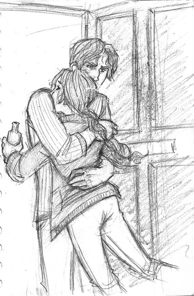 I love Peeta's reaction here, though. He's so surprised and you can tell he is going to be so happy in just a second, just after he realizes he is actually awake. I bet if what really happened didn't happen something like this would've. Amazing expressions, body language, pen and pencil strokes, and everything!