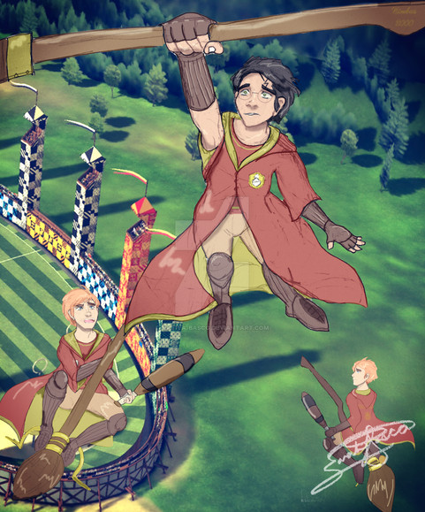 I like how Harry's expression depicts just how happy he is about Quidditch