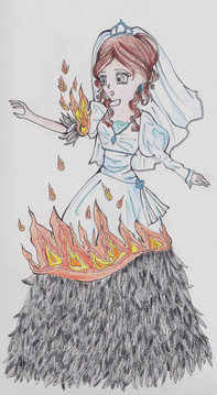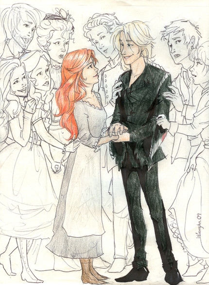 I love how you drew the dress and her expression. The details are awsome. No offense, but the sleeves should be longer. The book says it trailed to the floor or something. But it is really amazing.Β