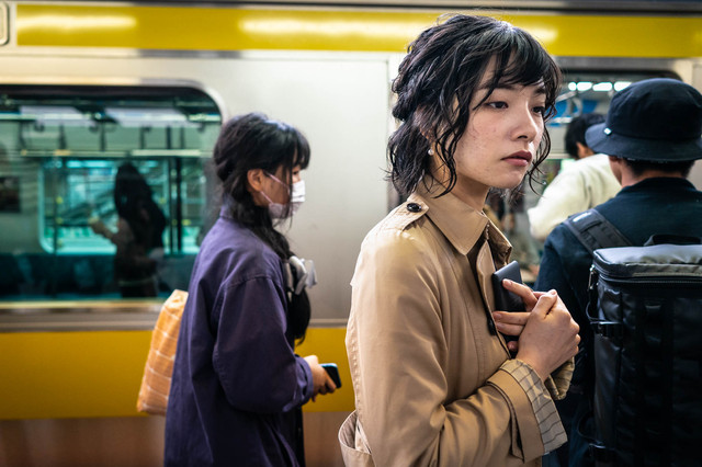 This was a case of shooting many similar photos and already having the concept well ingrained. Then on this day I was on my way somewhere and saw this lady in a purple kimono. It was a perfect contrast with the yellow Sobu line. So, I did a quick 180 as I passed her and waited for 2-3 minutes for the train to come. Getting the timing right was a matter of taking a few shots and then choosing the best one. That's it. So it was a combination of preparation and opportunity. This is called 'luck' by most people.