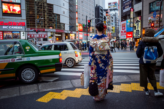 #japan #kimono #metropolis #shinjuku #street #tokyo #train #urban #yellow