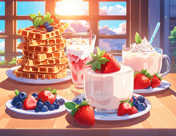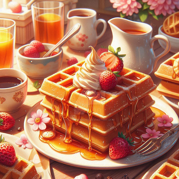 #anime #ai #dreamup #digitalart #wallpaper #breakfast #delicious #morning #orangejuice #originalart #waffle #glassofmilk #dailychallenge #ai_art