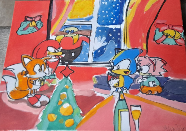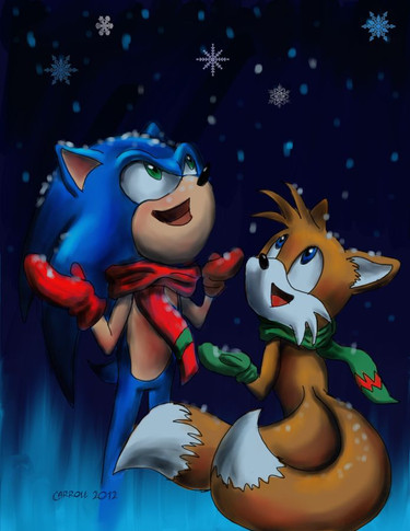 Sonic is keeping himself occupied whilst Tails has just arrived in time for Christmas