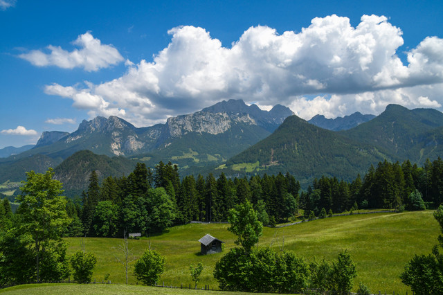 Magnificent valley view towards mount Dachstein (2995 meters) in AustriaPoint Dachsteinblick, Postalm (Austria)