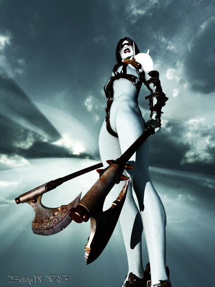 Great background: it fits with the wapon's shape... Perfect light on her...
