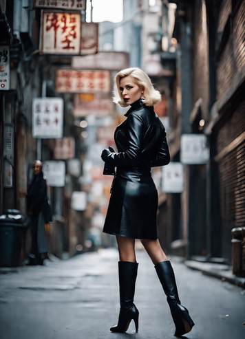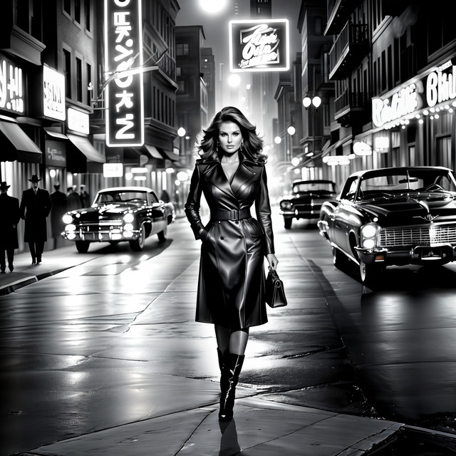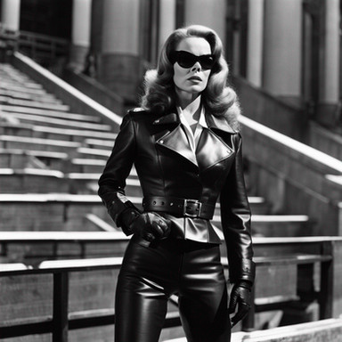 #vintage #leather #noir #superheroine #glamour #blackwidow #digitalart #bouffant #cityscape #europe #raquelwelch #secretagent #superspy #turtleneck