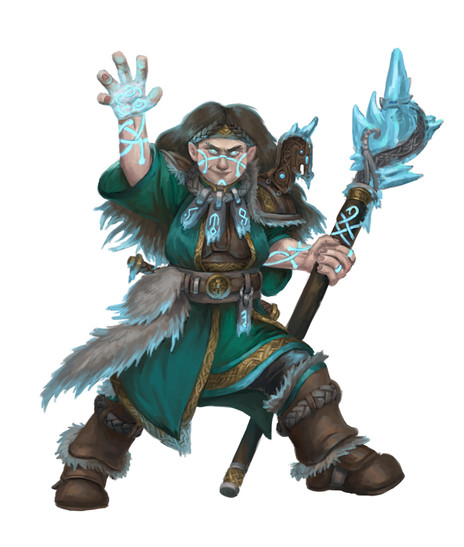 A female half-elf Runeweaver, One of 28 classes of a innovative RPG system Realm of Strife