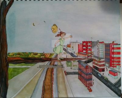 I love the whimsical quality and the easy blend of colors, yet they are very separate. And the bird is a very cute touch at the end of the branch. Personally, I love the lit windows in the buildings. I'm hoping I can start practicing with watercolor and I'd be very grateful to reach this level of painting!