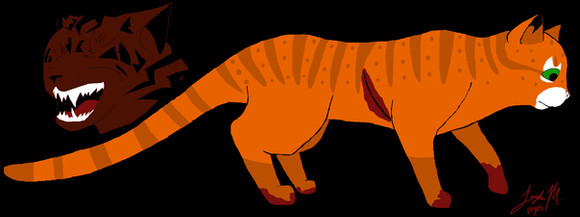 Bug - Young, dappled cream-and-brown tom with white paws and long, thick fur. He has tall, pointed ears, and large green eyes. He likes to help others but doesn't particularly like the company of others, so he will leave them as soon as they don't need him anymore. He doesn't like the company of others because when he was a kit, his siblings became sick with him and everything he did, and told him that no cat would ever like him, so he's left to his paranoia. He abandoned his family and ran into the wilderness, taught himself how to survive, except once when he spied on a clan's medicine cat training. Bug has incredible memory and strength, and his key weakness is his paranoia of othersHe is a loner