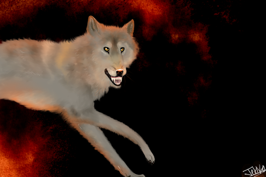 The dead grass feels like nettles on my pads... The air is an uncomfortable groggy weather, hot, wet, and dark. The most sunshine that hits me is the reflection from the moon, barely, when the clouds part at night. Every tree looks as if it has been either struck by lightning, burned, or attacked by many centuries of claws and teeth, though I haven't laid eyes on a physical, living being. Shadow monsters lurk everywhere around me, pulling my furs and driving me to injure myself. What have I done wrong? I don't remember anything, except for being here. I have been here for too long. I know I am not from here, that is for sure.Ash ran, looking for familiar territory. Every day he woke up in a different place in the same world. He never actually saw things move, but he knew the trees walk and the rocks roll. Over the hills, a flash of gold and white caught his eye. Stopping, he look to the top of the ridge, and there it was. I am not alone. That is another wolf! "Aye!" Ash shouted to the moving figure. It looked over. "I am no threat, please, I want to meet you!" The other wolf slowed to a stop and stared in Ash's direction.