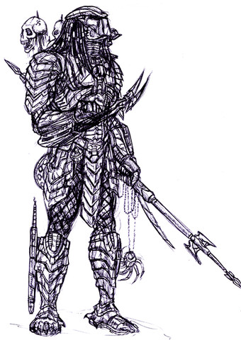 I love it, BZ. You have this keen sense of style when it comes to the Yautja mask and weaponry. Also, very nice folds on his cloth, and that my friend is a "Texas-sized belt buckle."