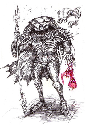 Another drawing of the Predator collecting Marc's head as a trophy. This time with shorter hair or should I say a different hair cut. Gonna try to colour this in photoshop. Here you go Marc, another Badass MoFo want your head!!!!Related content