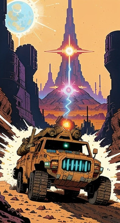 #scifi #space #vehicle #apocalyptic #digitalart #cartoon #car #spaceship #80s #comic #illustration #military #popculture #scififantasy #vector #warrior #pulpcomic #buzatron #gulioche
