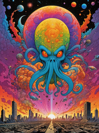 #digitalart #horror #scifi #monster #neon #cityscape #lovecraft #comic #digitalpainting #illustration #noir #octopus #popculture #scififantasy #vector #pulpcomic #buzatron #gulioche