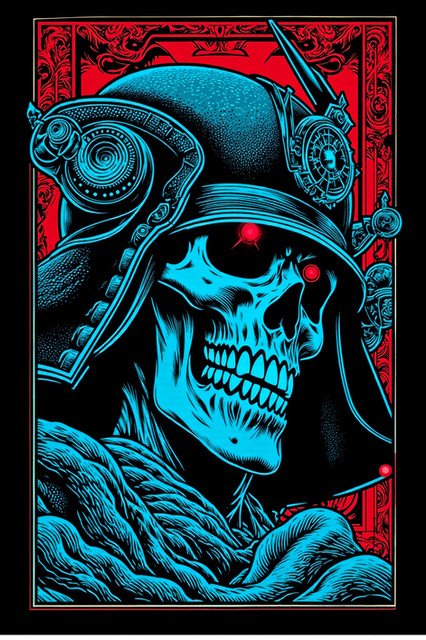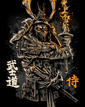 #digitalart #fantasyart #samurai #skull #wallart #warrior #comic #illustration #popculture #scifi #scififantasy #vector #pulpcomic #buzatron #gulioche