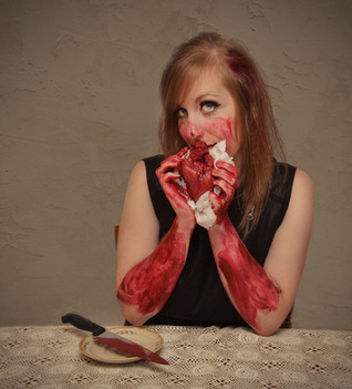 It's probably the blood from the model going ON to the bear. seriously, it;s commen sense be looking .