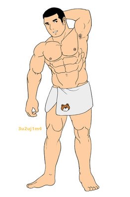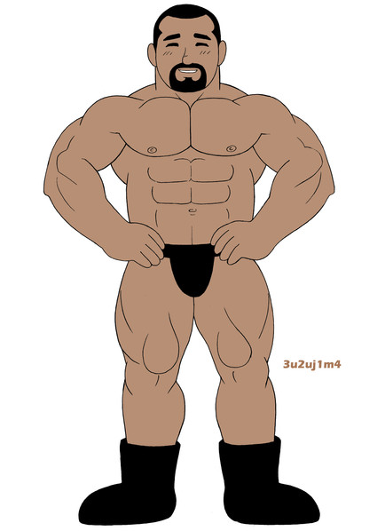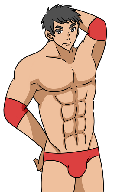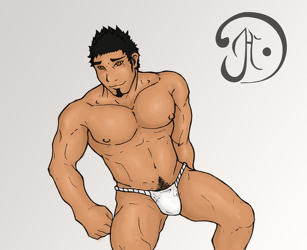 he looks worried about being almost full frontal. Can we se him without the thong?