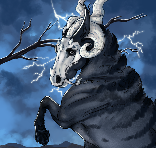 Caelum is a stoic and passive deity, he does his job quietly and rarely interacts with those outside of his clan, he leaves that to his followers. Most assume him lazy for his disappearing acts, but really he is extremely busy - managing the weather is no small task.