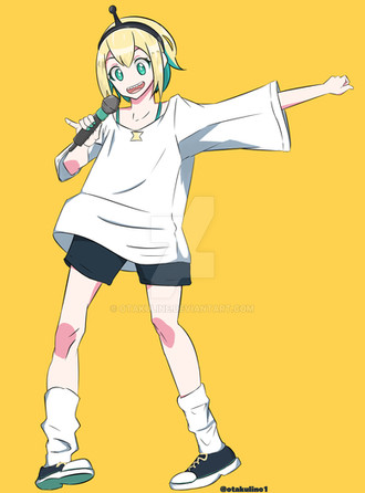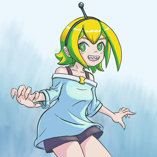 #green #sneakers #stream #streamer #streaming #teeth #tshirt #yellow #youtube #monster_girl #yellow_hair #voms #vtuber #pikamee #monstergirl #pointyteeth #whitetshirt #streamergirl #vtuberfanart #voms_project #vtuber_fanart