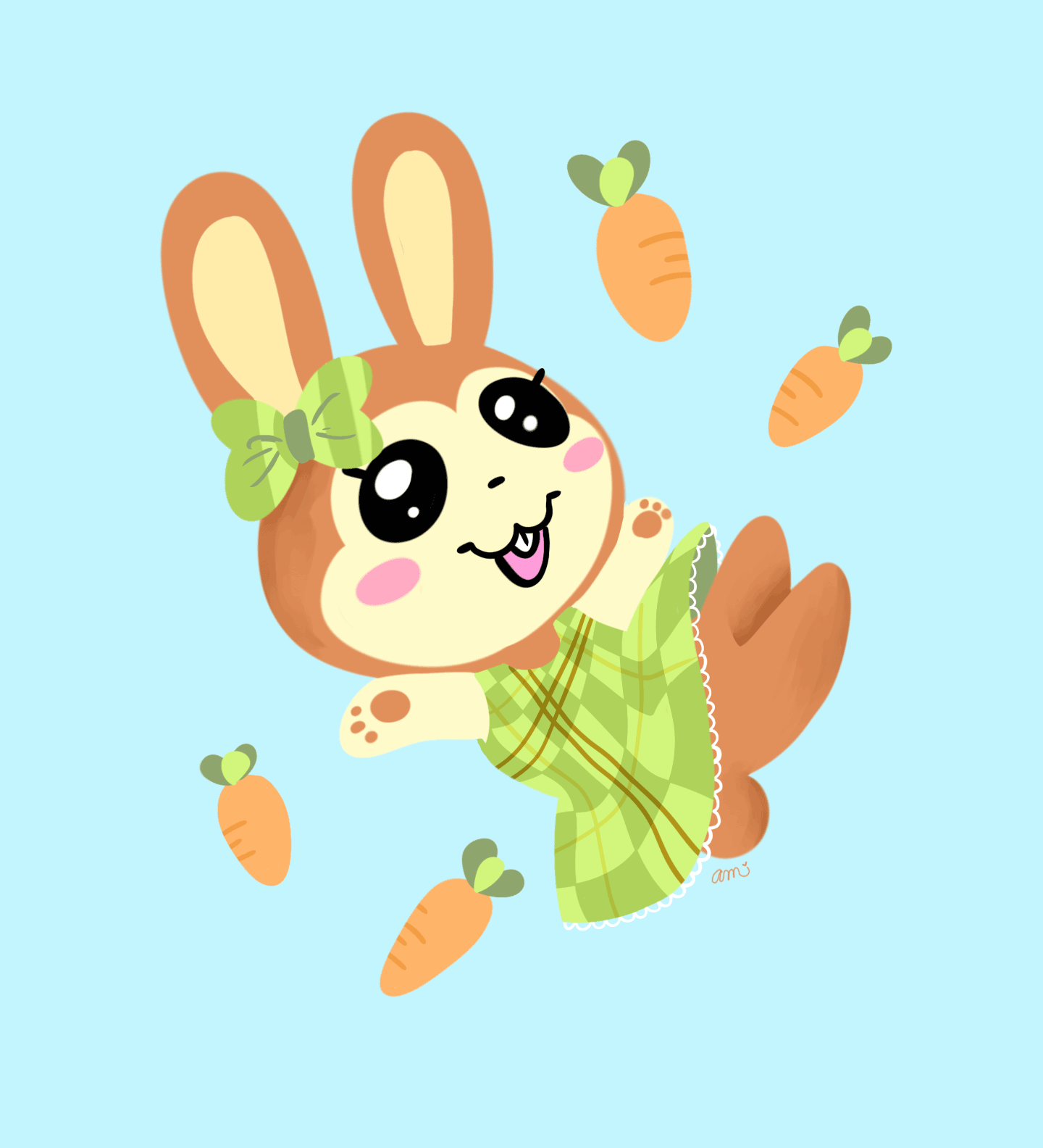 Argh! Where has this adorable thing been all my life? When the powers that be combine rabbits and endearing teeth, I just can't lose. I couldn't tell if she just had really large buck teeth or a gap, but I went with the latter because I find it cuter in this instance. I already have Isabelle for my buck tooth fix.Her colors make me think of mints and chocolates, and if the Animal Crossing Wikia is accurate, her initial phrase is "nougat". I feel like you're missing out on a theme here by going with Carmen/[anything not "Choco"]. So why the localization? Was it too on the nose or...?