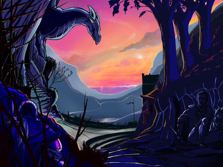 A dark elf overlooking a ritual in the alleyways of the underworld. Ethereal lights, exotic ceremonies, interesting stuff.