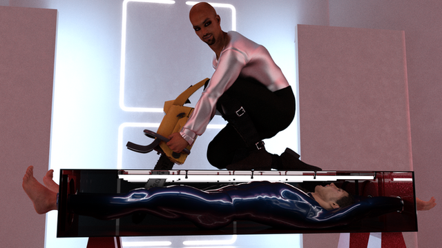 "See, I told you I could do it" Michael said triumphantly. "It's bit tight, but I'm used to it" he chuckled, "but I'm used to it. Those sawing boxes I have to get into aren't much bigger". "I wasn't sure you were gonna get all the way in" James replied, "but you managed it". "All the better, we can proceed". "What with?" Michael asked. A sinister grin flashed across James' face.Related content