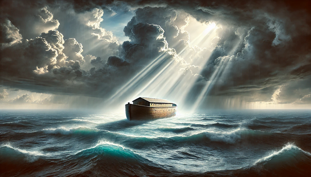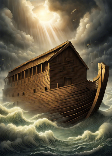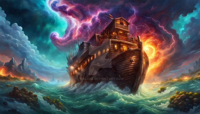 #sea #drama #boat #portrait #sky #ancient #epic #ai #boulders #flood #leonardo #lightning #noah #scary #stormy #bwall49