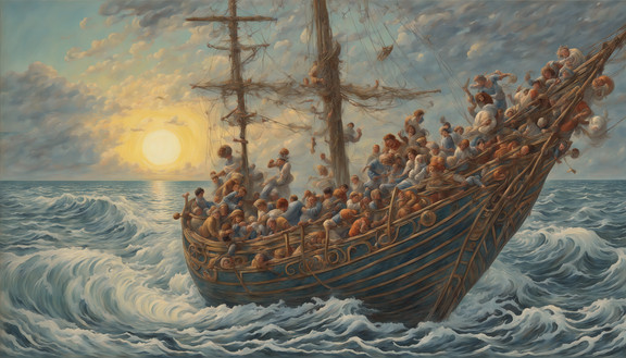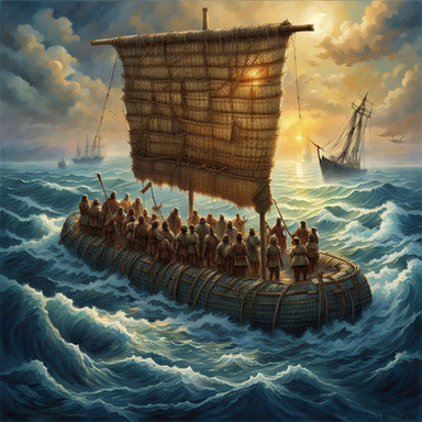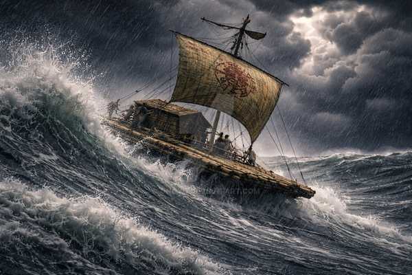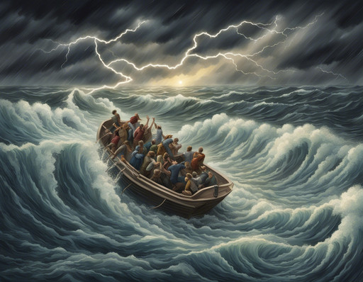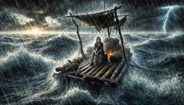 #boat #adventure #ai #dalle #fear #moody #ocean #oceanscape #raft #rain #storm