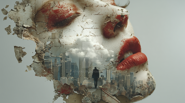 #portrait #photography #beauty #photomanipulation #expression #digitalart #surreal #body #texture #portraitgirl #ai #distraught #face #woman #neutraltones #midjourney #bwall49