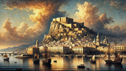 #medieval #sea #boat #digitalart #fantasyart #architecture #ancient #castle #incongruent #photomanipulation #rivan #turmoil #watercolor #midjourney