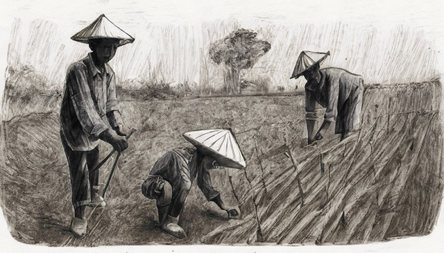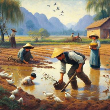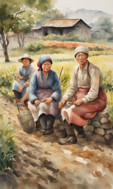 #portrait #illustrator #ai #asian #commonman #elderly #leonardo #rice #thrashing #watercolor #workers #farmlabor #bwall49
