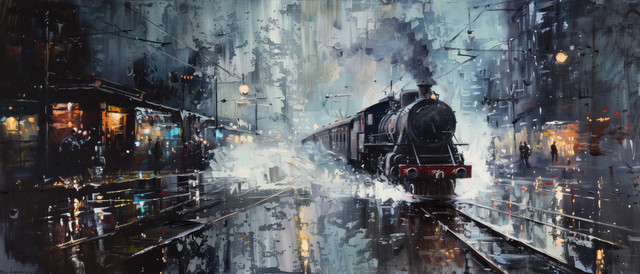 #digitalart #architecture #cityscape #drama #reflection #portrait #noir #sky #2025 #ai #building #cannery #loft #moody #nightime #photomanipulation #photorealistic #photoshop #rainy #traintracks #midjourney #bwall49