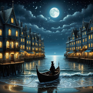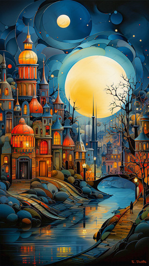#digitalart #reflection #epic #surreal #magic #fantasyart #ai #architecture #boat #golden #houses #life #moon #painterly #town #water #midjourney #bwall49