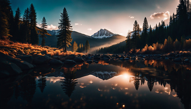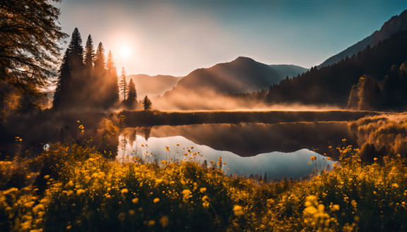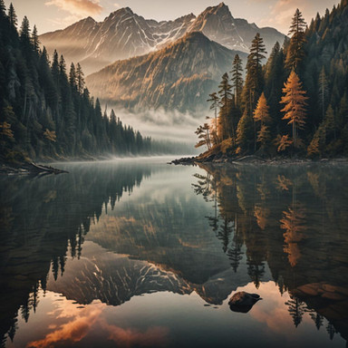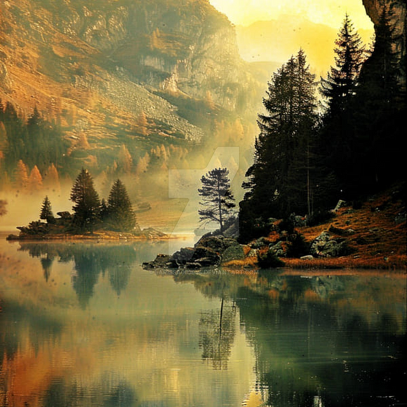 #wallpaper #forest #sky #reflection #digitalart #fog #2025 #ai #dawn #early #lake #nature #quiet #silence #midjourney #bwall49