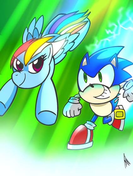 I wanted to draw Sonic vs Rainbow Dash because my inner 10 year old kid self DEMANDED IT *_* s-so dumb. Am pleased with how it came out though.Related content