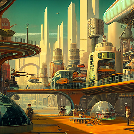 thats seriously amazing. I love those old retro images of what they thought the future would be Youve really captured the style here. Looks like something from one of the "Fallout" games.
