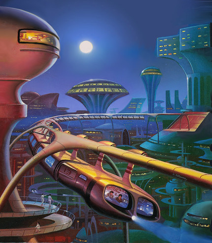 OK... this is a killer illustration... I have a monster collection of old sci-fi... and the future just ain't gonna happen like anyone saw it... but your image embodies the best of all the optimistic visions... I find it a little sad when compared to the future that seems more likely.