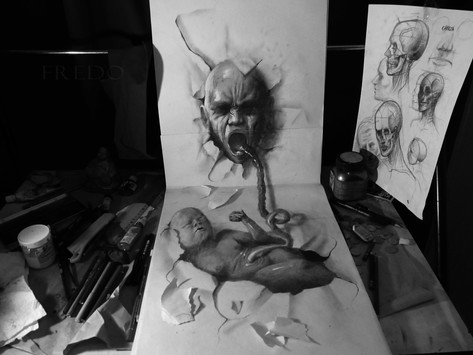 Either it is a strong figure, usually an old person, or a very young child and the mind is expanding. The tree and its countless symbolisms of course...These are the elements allowing me to identify your style in the blink of an eye. Some people claim "Art" doesn't necessarily need an interpretation but i feel like you're sharing an important message through your work. Y lo haces muy bien mijo