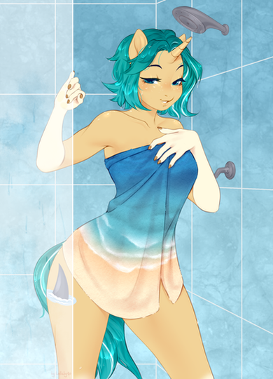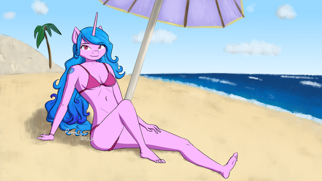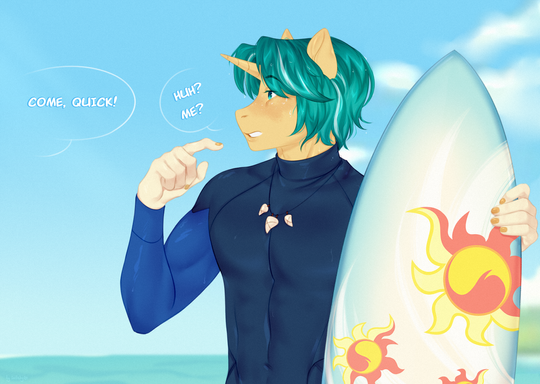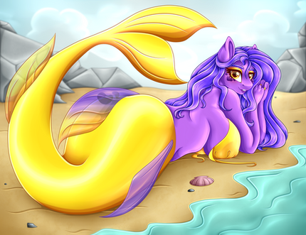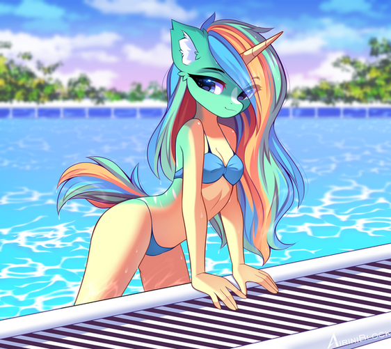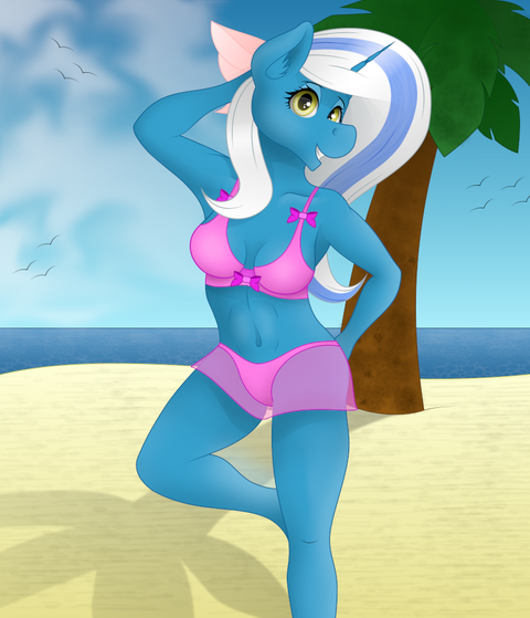#anthro #beach #commission #mlp #shark #sunbathing #swimsuit #unicorn