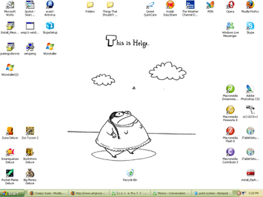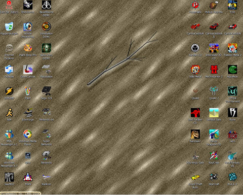 eep, you have so many shortcuts on yer desktop *poke* you must have a good comp mine is a silly old Windows ME *prods it*