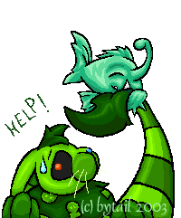 Ha, pretty pretty Bytail I'm not a green lover but yeh, green suits you ^-^ And so does the char, though I don't get which animal/fantasy animal is that, bytailish? :3